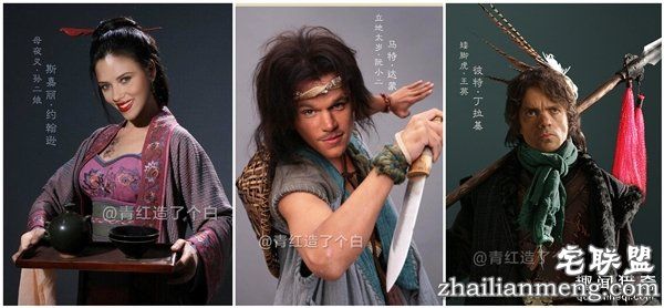 比较逗的扮相有道恩强森的鲁智深、泰森的李逵、马特达蒙的阮小二、斯嘉丽约翰逊的孙二娘、彼特丁拉基的矮脚虎王英等,还有抖森饰演西门庆、梅根福克斯饰演潘金莲。