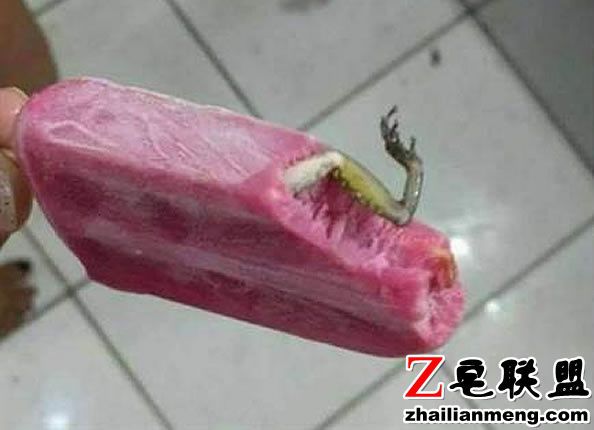 一网友网上发图表示,照片中的紫红色棒冰被咬一口后,竟出现一只被冷冻的“青蛙腿”,而且整只腿完好的插在棒冰中,让许多网友纷纷留言表示“真恶心”。