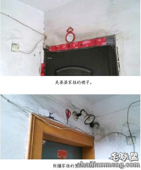 15年的老邻居,以前关系十分亲密,就为了迷信而在楼道“斗法”。两家的大门上贴出了‘青龙’、‘白虎’,后来竟挂出了镜子、剪刀和大灯!真是够奇葩的!