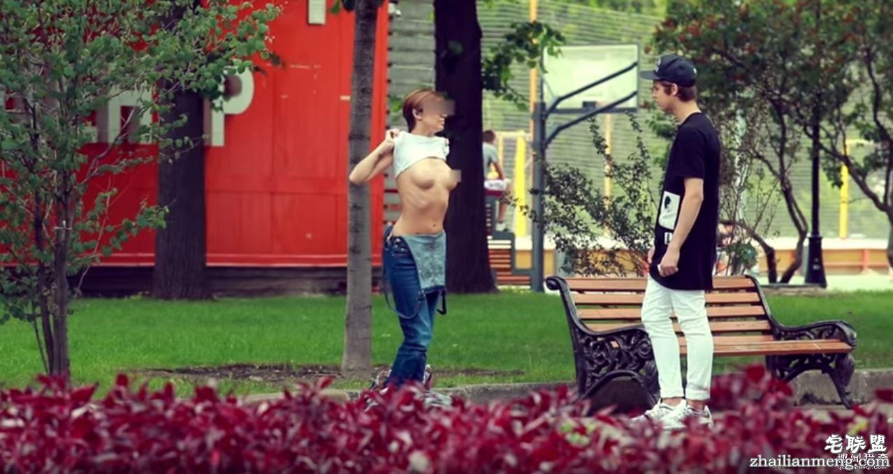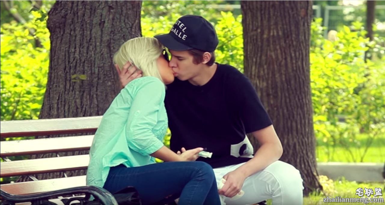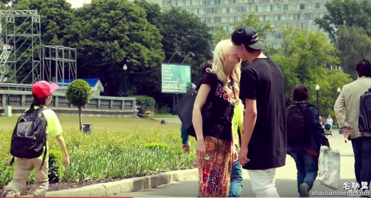 首先他来到公园胡乱搭讪漂亮的妹子,然后以3,000-5,000卢布劝诱妹子们跟他接吻。女孩们都答应了~~