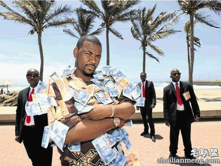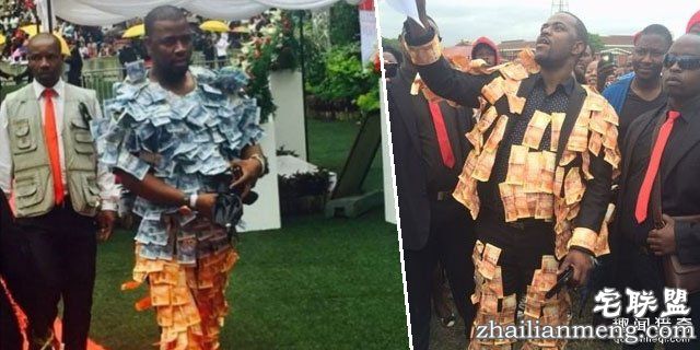 炫富方式千百种,但绝对没有人能像下面这位南非土豪德里米(Michael Andile Dlamini)一样俗不可耐,他靠着卖草药,赚进大把钞票,是当地超级有钱人,于是他为了炫富,开始穿上真钞制作的服装招摇过市。对此疯狂的行为他表示,是为了感谢那些送钱给我的人们!