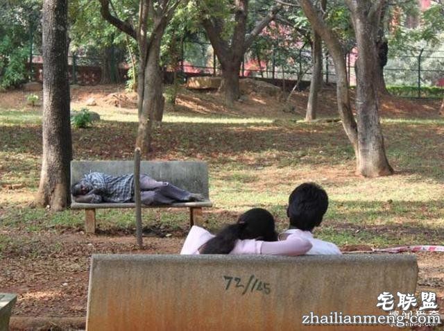 在印度,情侣在公关场合接吻是非法的,另外一个男子是负责看住他们的