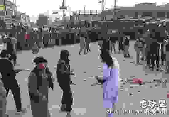 极端分子宣读完罪状后,下令众人执刑,直到两人被乱石击毙,死在血泊中。