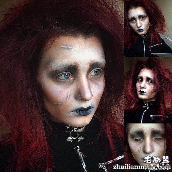 这个化着的恐怖妆容的女孩叫Caroline,她今年才刚满19岁。然而,年纪轻轻的她,就已经是一个小有名气的特效化妆师了。女孩的眼睛是深黑色的,脸上有许多黑色的裂纹,相当精致,绝对是“恐怖晚会”的女主角~