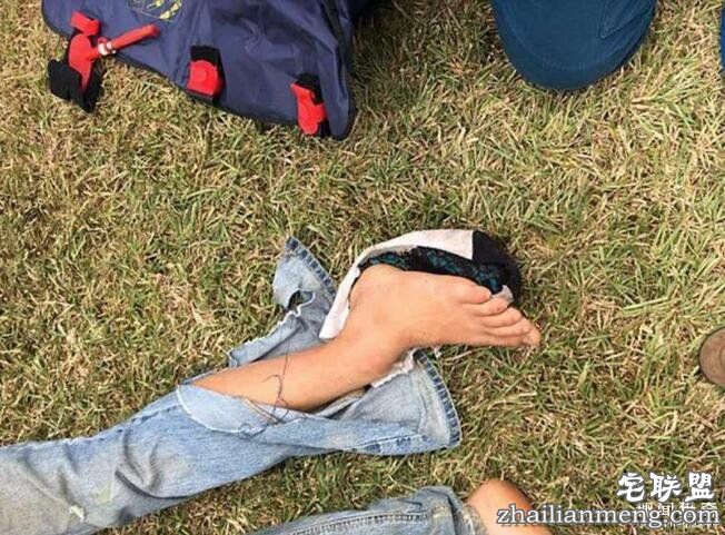 ▼摩托车的油门卡住,Bradley闪避路上的障碍物时直接飞了出去,撞到了铁丝网上。巨大的撞击导致他脚踝脱臼,肚皮也被划破。