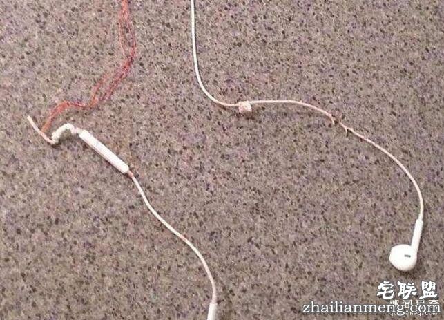 ▼巨大的拉扯力量让耳机的塑胶壳剥离,露出里面锐利的铜线,这些铜线几乎切断Bradley的气管。