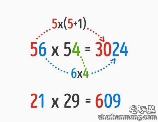 ▼被乘数和乘数都很大的话,把被乘数十位数以上的数字以下面的公式运算:十位数以上x(十位数以上+1)为乘积的「头」,被乘积与乘积的个位数字互乘为「尾」,就能算出答案,不过尾数要相加等于10才行。