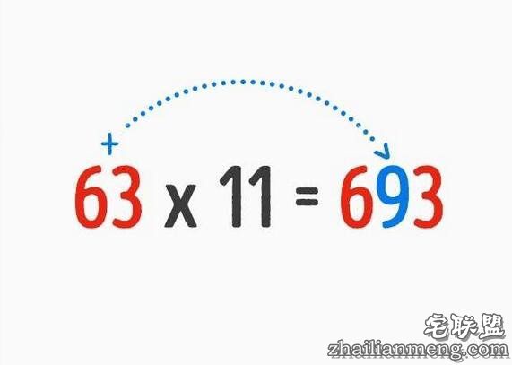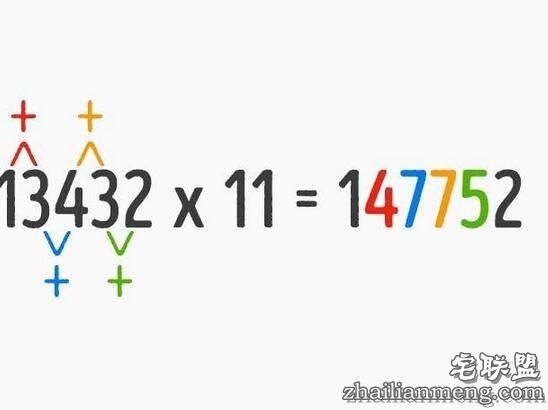 ▼若乘数是11,不管被乘数是多少,只要把头尾数字写好,中间的数字按照下图相加,就能轻松得出答案。