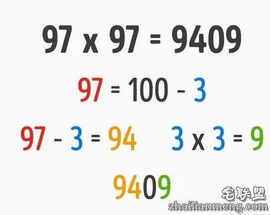 ▼面对数字超大的平方数,可以按照下面的公式计算。不过只有靠近100的平方数比较好算。