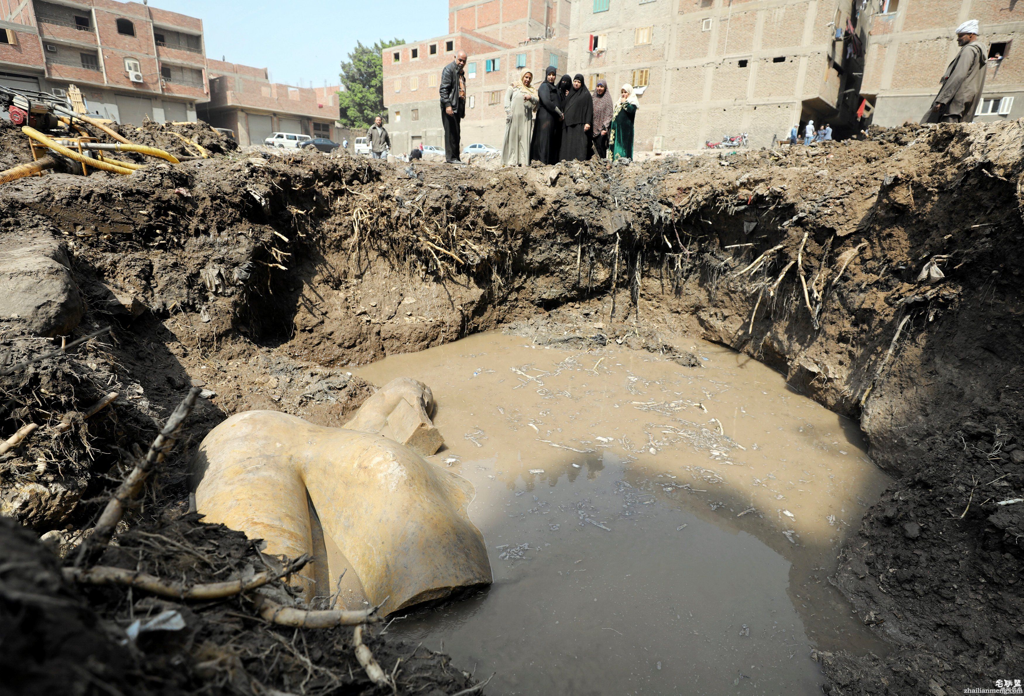 德国和埃及考古团队日前在埃及首都开罗(Cairo)贫民窟的水坑中挖出一块巨石像的头部,约26英尺(8米)高,考古学家都认为这是近期最珍贵的,因为这石像疑是为3000多年前,最着名、在位最久的法老王拉美西斯二世(Ramses II)。