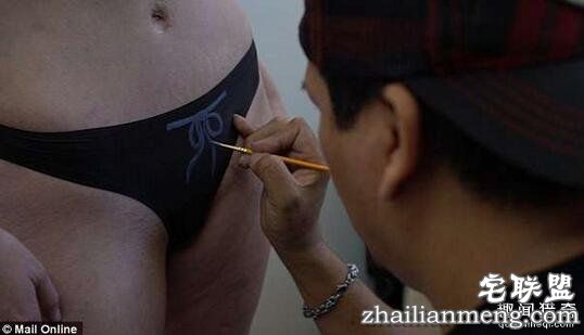▼Crystal身上的比基尼彩绘非常逼真,这是专业人体彩绘师Octavio Solis的作品,虽然比基尼布料很少,但他足足忙了两个小时。