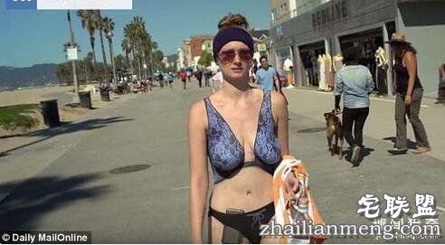 ▼洛杉矶24岁模特儿Crystal Eastman没有穿任何衣服,只靠身上的比基尼彩绘遮羞,大胆走上街头,观察路人的反应。