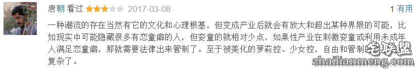 "一种潮流的存在当然有它的文化和心理根基,但变成产业后就会有放大和超出某种界限的可能,比如现实中可能隐藏很多有恋童癖的人,但娈童的就相对少点,如果性产业在刺激娈童或利用未成年人满足恋童癖,那就需要法律出来管制了。至于被美化的萝莉控、少女控,自由和管制的关系就更复杂了。"