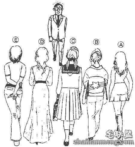 看到一位正面走来的年轻男性,他一直凝视着的一位女性,你认为会是这当中哪一位呢?
