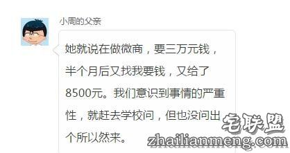 她就说在做微商,要三万元钱,半个月后又找我要钱,又给了8500元。我们意识到事情的严重性,就赶去学校问,但也没问出个所以然来。
