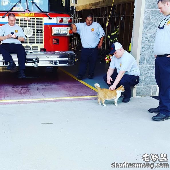 在美国南卡罗来纳州的消防局一名叫Jordan Lide 的消防队员,2年前在消防局附近草皮上发现了一只饿坏了的喵星人。
