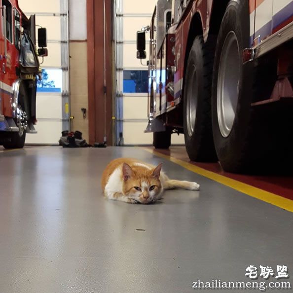 这只喵星人被取名为“Flame”,平常在消防局内到处走,也会躺在消防车上静静地陪队员办公。