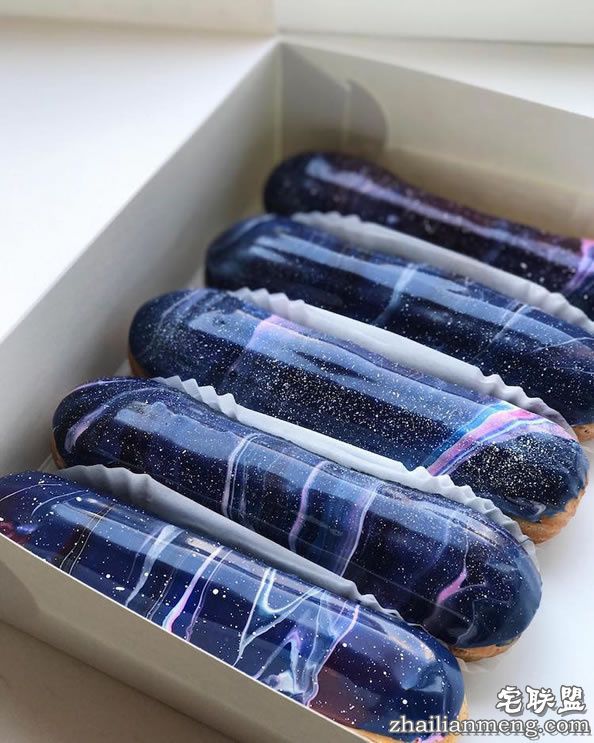 “银河系”面包灵感来自哈勃太空望远镜的系列照片,面包上这一层其实是糖衣,拥有各种色调,如蓝色、紫色和粉红色打造成的星系漩涡。