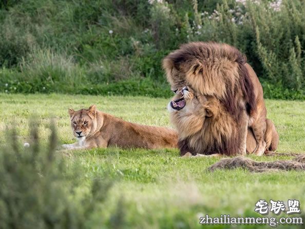 这样激情的一幕,一旁的母狮也都看在眼里,但她的反应看起来十分淡定,后来还将头撇开。
