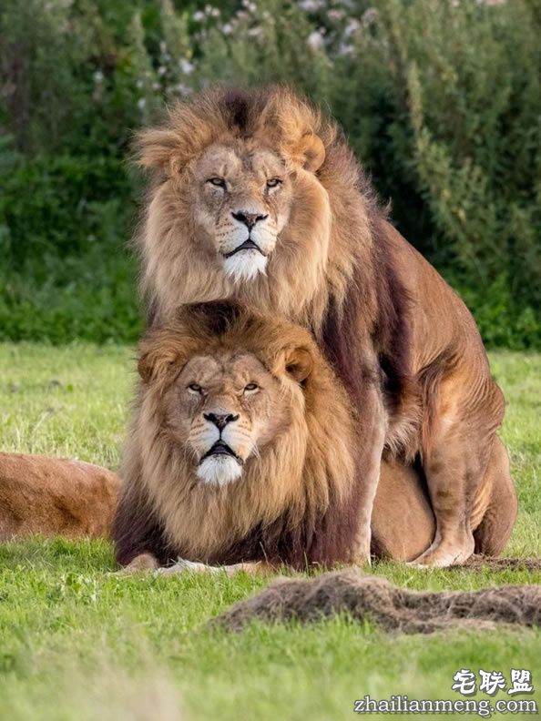英国42岁摄影师Russ Bridges 近来在约克郡野生公园目睹公狮上演“断背”,两只公狮身体交迭在一起,看起来好像在进行交配。