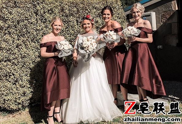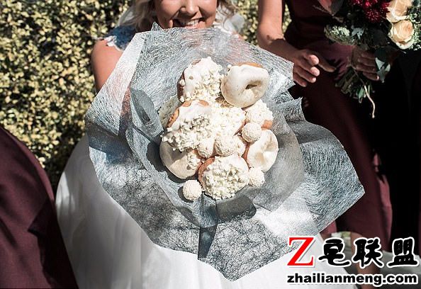 要让伴娘们手拿“甜甜圈花束”,就是那种可以吃的甜甜圈,不仅伴娘超开心,连宾客也都很爱这个点子。
