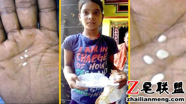 印度Madhya Pradesh 一位11岁女孩Manasi Kevat 目前读小学6年级,上月25日开始,她的眼睛就开始分泌白色小卵石。
