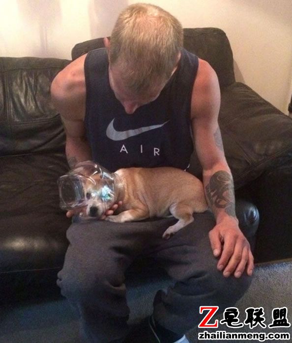 主人Patrick Rebbeck 的2位女儿当天在厨房吃饼干,吃完把饼干罐顺手放地上,Buddy 被卡在里面大概一个小时。