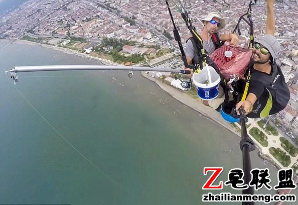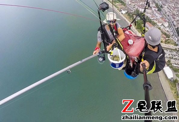 但是土耳其两名软件工程师突发奇想,把两者结合起来,边玩滑翔翼,边在150米黑海上空钓鱼,还真钓到了4条鱼。