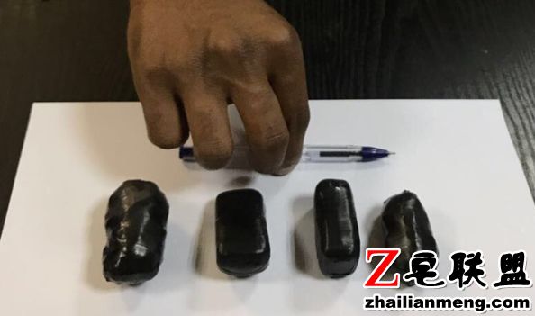 因为金属探测器侦测到金属反应,检查后发现,金块仔细地用塑料袋分装,再整齐地插入直肠。