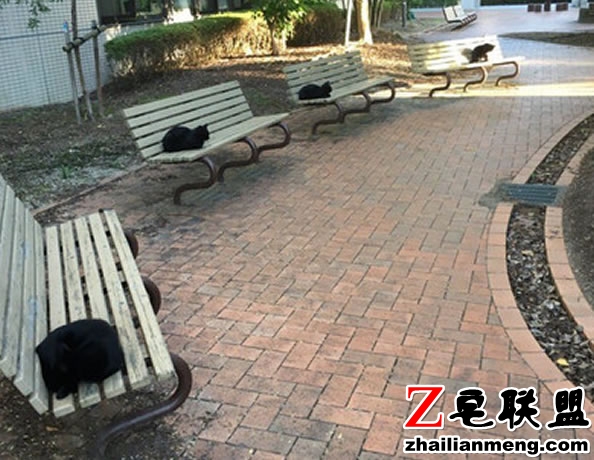 日本有名网友Hiyakun 在网络上分享一张有趣的喵星人照片,他表示前几天在公园散步时,看到“黑色会”的主子在座椅区群聚。