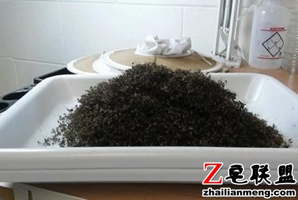 只见一个白色盘子上堆满密密麻麻的黑色物体,远远看过去就像一座小山丘,抹平又刚好可以填满盘子,可见数量十分庞大。