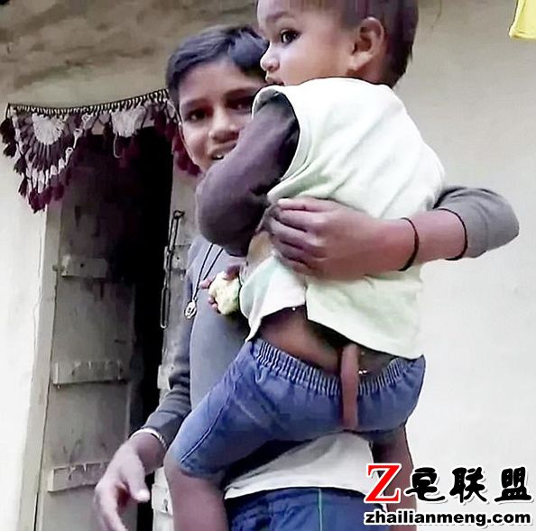 印度北方邦一名3岁小娃Krishna Yadav 在出生时,脊椎尾端长有一个肉瘤,而随着年龄增长,这块肉瘤竟越来越长,到现在已有30公分。