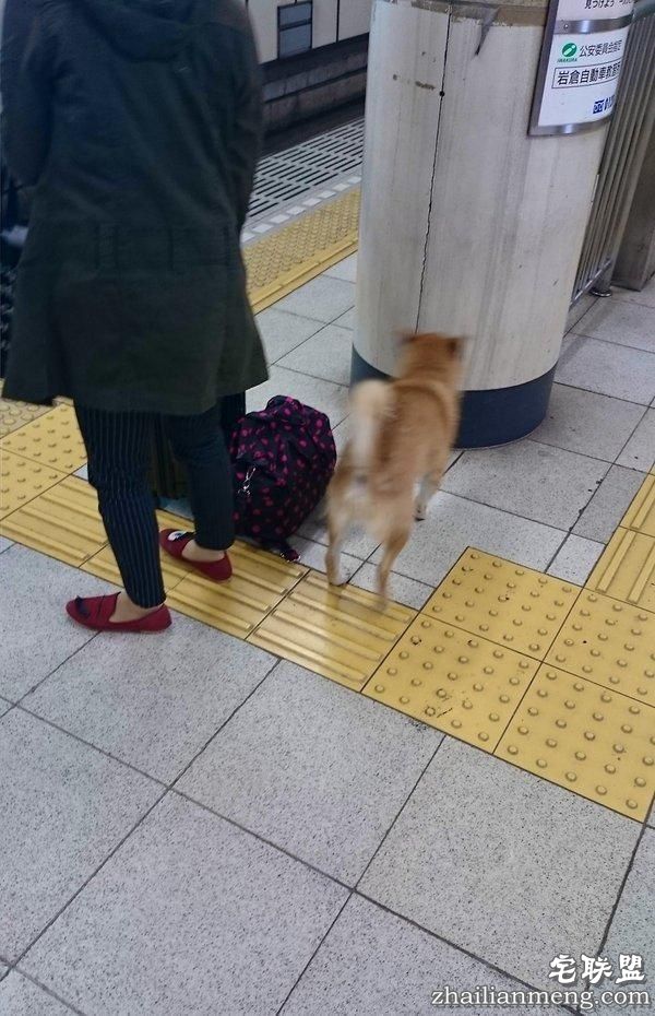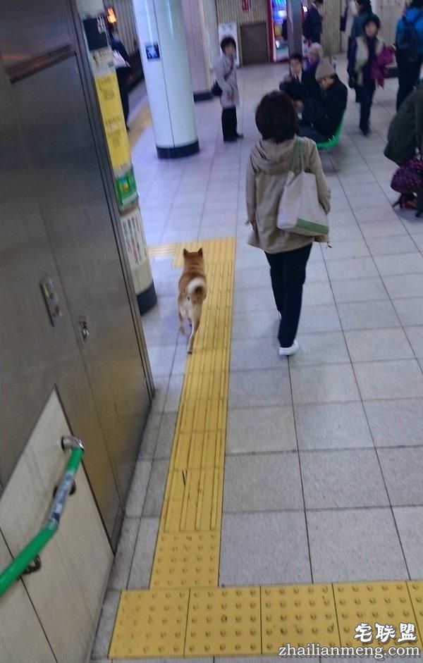 日本网友在推特上传照片,一只柴犬若无其事地走进剪票口,随著人群直接混入车站内,站在月台上等车。