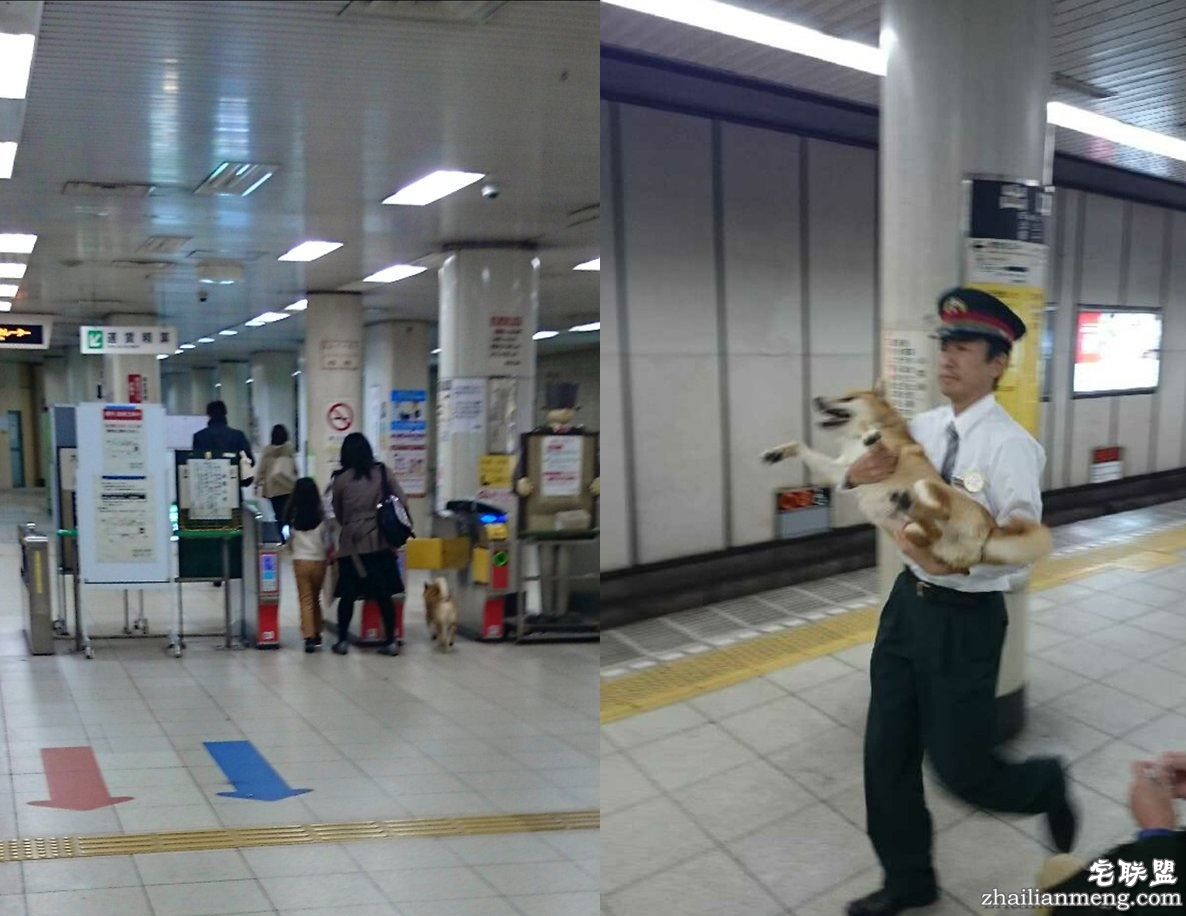 不过,“逃票行為”很快就被站务人员发现,随即将这只柴犬一把抱起来,将它逮捕归案。而站务人员脸上面无表情,和一脸狰狞的柴犬形成强烈对比,成為照片中的一大亮点。