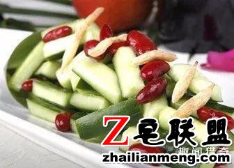 取连皮黄瓜200克,麦冬9克。先将嫩黄瓜洗净去头尾,切成短条状,麦冬加水蒸熟后与黄瓜加糖、醋拌和即成。具有减肥降脂、清热通腑作用,食之对口渴咽干,口舌生疮,大便秘结等有益。