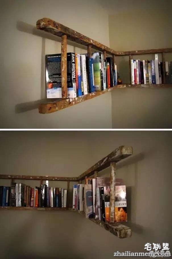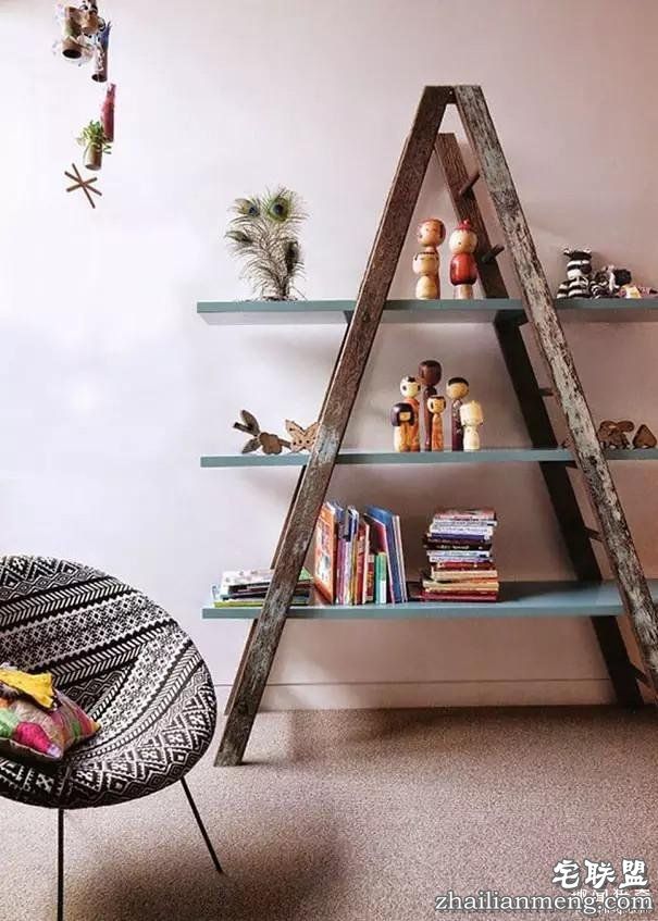 旧梯子做书架,别具一番风味。
