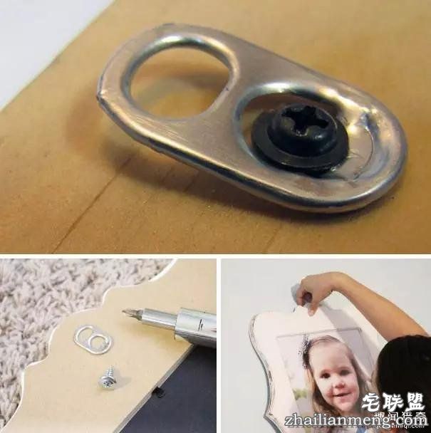 简单加工,易拉罐的拉环就成了相框的挂钩。