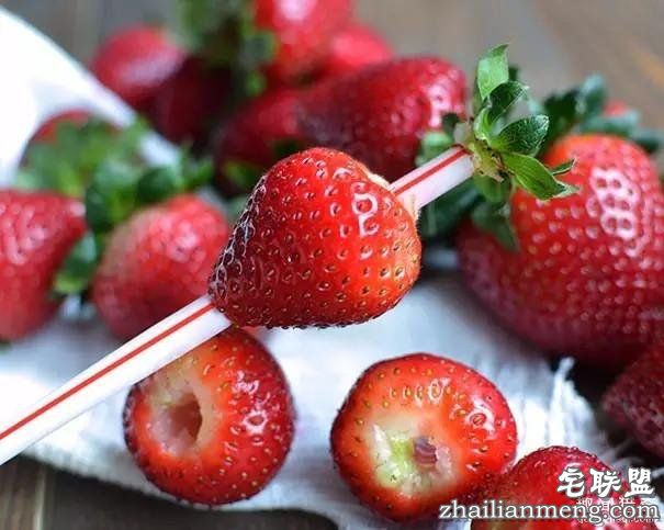 用吸管很轻松地去除草莓的这个部分。