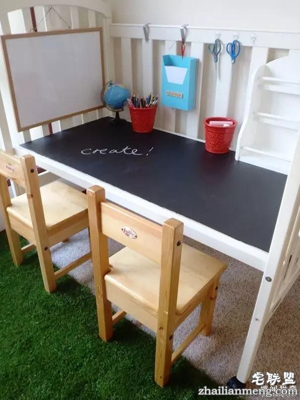 其实婴儿床可以改造成孩子的书桌。