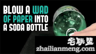 5、塞团纸团在空宝特瓶瓶口,你无法用吹的把它吹进瓶子里。