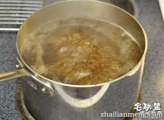 ▼煮沸一段时间,倒出可乐用水冲洗。