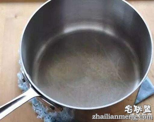 ▼锅子底部黑黑的脏东西,怎么也洗不掉。试著在锅里加入一罐可乐,开火煮沸。
