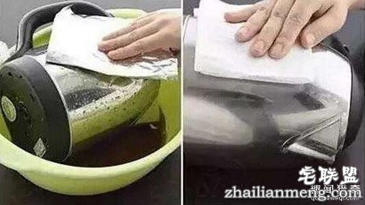 ▼把水壶中装满可乐,泡上几个小时。隔天打开水壶,倒出可乐,用清水冲洗。茶壶内部是不是干干净净啦。
