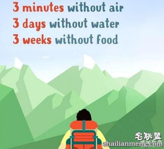 ▼出游时记住这3点:你最多能在没空气的情况下活3分钟;最多3天不喝水;最多3周不进食。