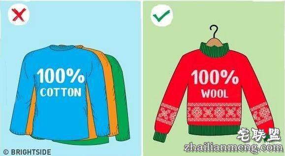 ▼天冷时穿对衣服:我们都知道,皮肤湿漉漉的话,热量会散发得很快,想要保暖,首先要尽可能保持皮肤干燥。羊毛这种材料吸水效果最好,出汗后体温也不会下降太多,天冷时选这种材料的衣服最合适。