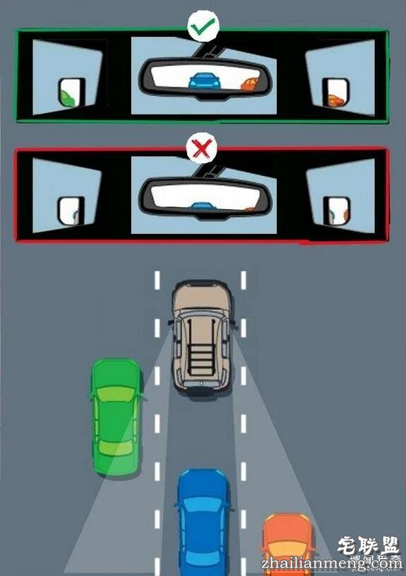 ▼正确调整车子后视镜:坐在驾驶座上调整左右两侧的车镜时,让它们恰好看不到自己的车子。这样可以最大可能消除视觉盲点,想要看后面车子的话,从中央的后视镜看就可以了。