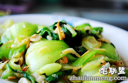 做法:白菜心洗净切成段,虾皮3汤匙用水略冲洗。炒锅上火,放油烧热,加入虾皮,适量蒜蓉,白菜心炒匀,炒至菜熟,不需调味即可上桌。