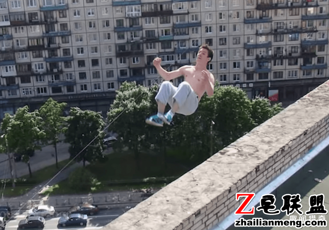13.这张照片上是著名的跑酷爱好者帕维尔·卡辛(Pavel Kashin)正在表演跑酷,但他失败了,他的试图回到墙内,但他很快就失去了平衡,掉到了地上。