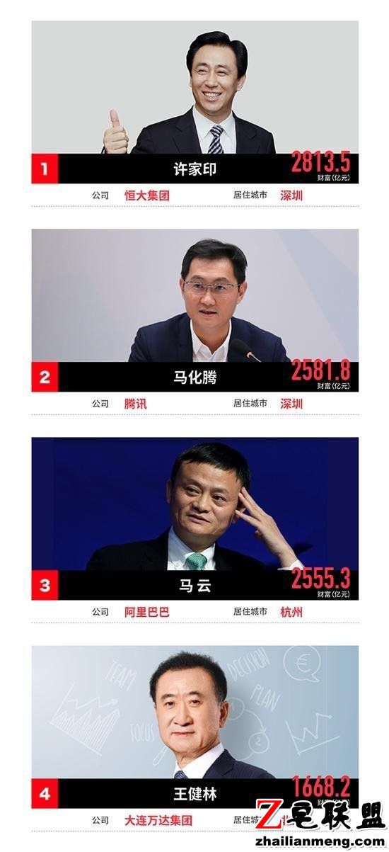 位居本榜单第2名的是马化腾(又名Pony Ma)。马化腾的财富猛增了近57%,达到2581.8亿元。而马云排在第三位,财富净值增长了超过三分之一,达到2555.3亿元。而第四是大连万达集团董事长王健林,财富净值为1,668.2亿元,下跌近542.8亿元。Ywp宅联盟 - 宅男福利社