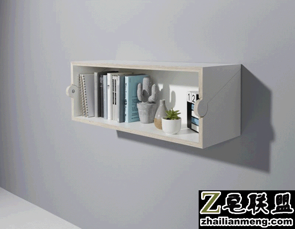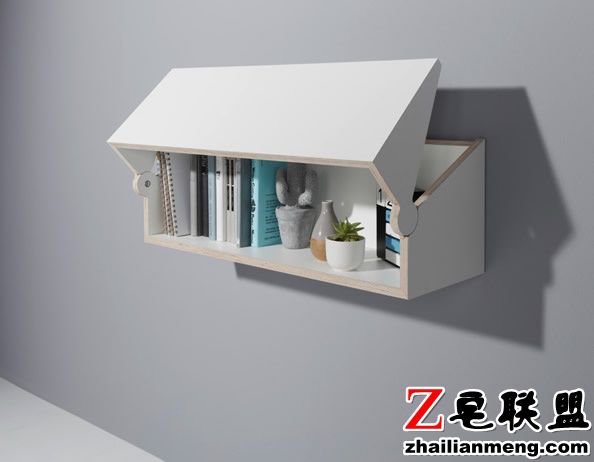 “twofold desk”设计非常的巧妙,它是一个壁挂式的书架,也是置物收纳架,但它还有一个非常实用的功能,那就是书桌。